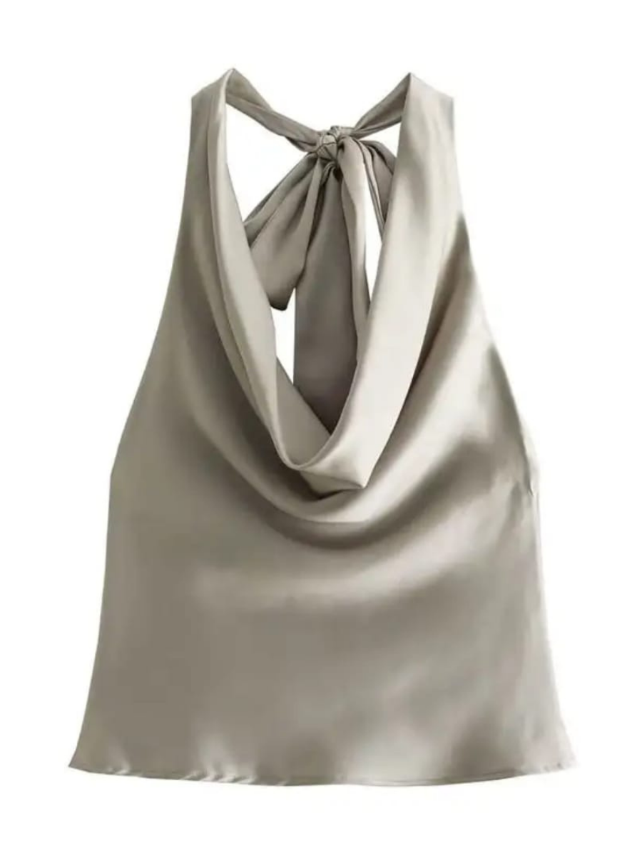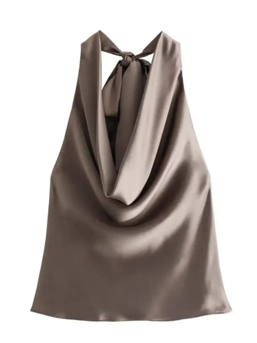 This cowl halter top is cut to flow, not cling, with a soft drape that does all the flirting for you.<